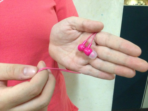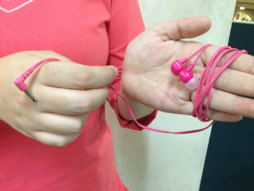 4. Introduzcan el extremo del conector en una de las «orejas» de los audífonos enrollados y ya está.